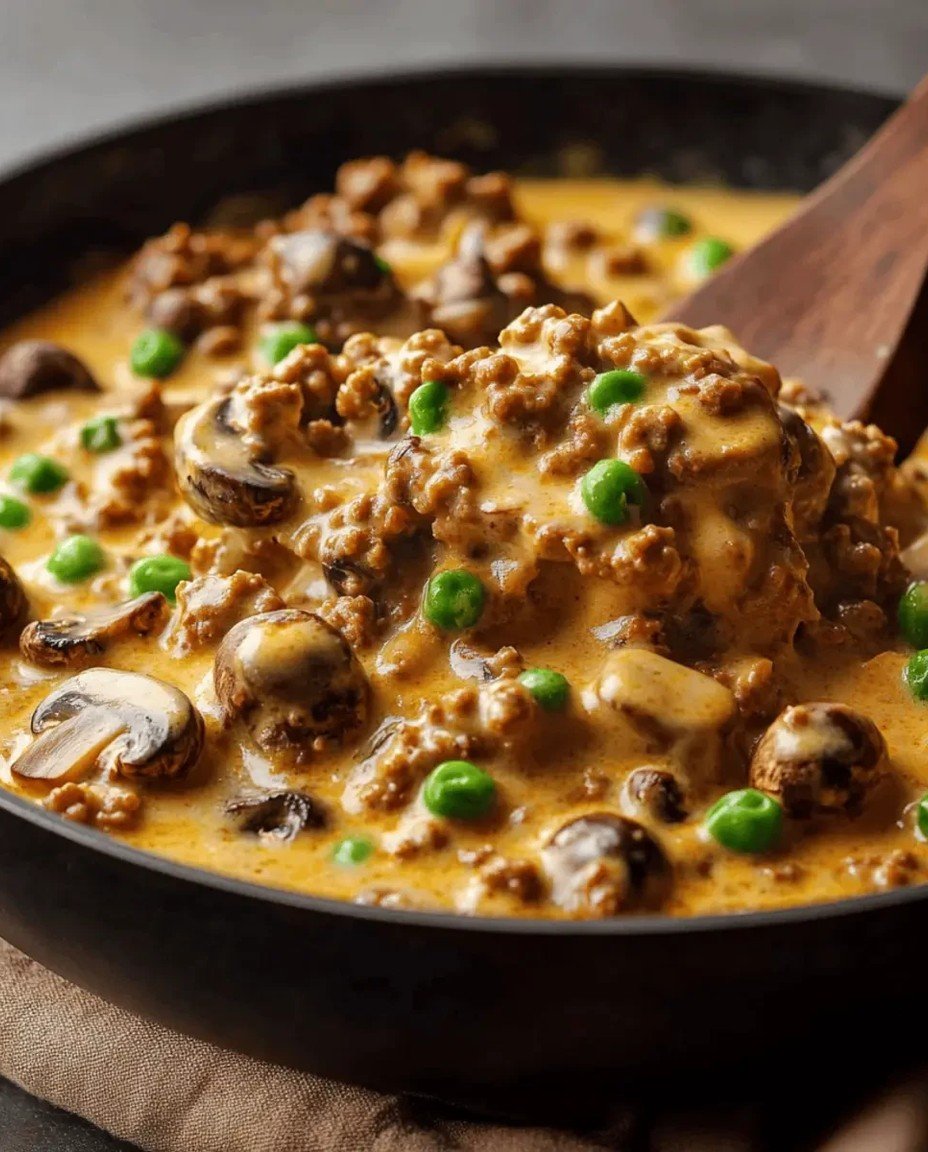 Das goldbraune Anbraten von Hackfleisch und Zwiebeln schafft eine intensive Umami-Grundlage. Die erdigen Pilze und eine cremige Sauce verschmelzen diese Aromen perfekt.
