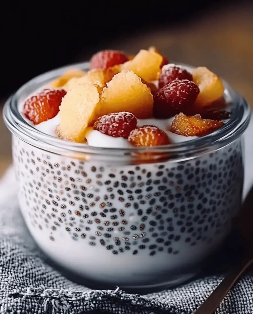Die hydratisierten Chiasamen verwandeln sich in ein viskoses Gel, das eine seidig-glatte Textur bildet, welche jeden Löffel dieses Puddings zu einem sinnlichen Erlebnis macht. Diese Metamorphose ist ein faszinierendes Beispiel …