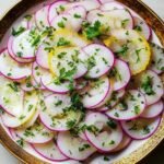 Das Geheimnis, wie bereitet man Kohlrabi Carpaccio mit Zitrone zu, liegt in seiner Einfachheit und der Frische der Zutaten. Jeder hauchdünne Scheibe Kohlrabi, liebevoll mariniert in spritziger Zitrone und feinem Olivenöl, bietet ein leichtes und doch unglaublich aromatisches Geschmackserlebnis. Die knackige Textur des Kohlrabis trifft auf die belebende Säure der Zitrone, gekrönt von frischen Kräutern, die das Gericht abrunden. Es ist eine wahre Gaumenfreude, die nicht nur beeindruckt, sondern auch leicht zubereitet ist. Tauchen Sie ein in die Welt der feinen Aromen und überraschen Sie Ihre Lieben mit diesem eleganten, erfrischenden Gericht. Probieren Sie es noch heute aus und lassen Sie sich von seiner Leichtigkeit verzaubern!