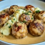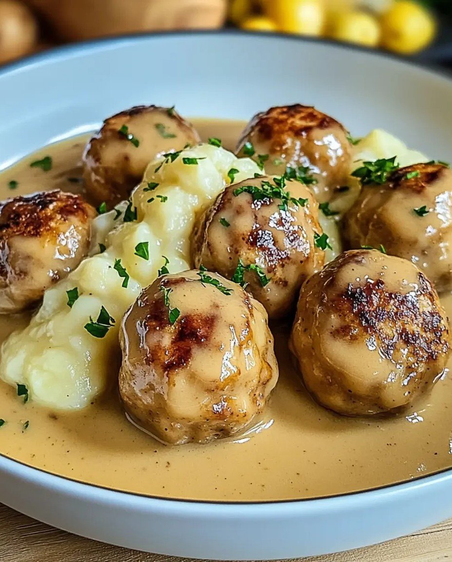 Eine cremige Sauce umhüllt die saftigen Hackbällchen, während sie auf einem Bett von samtigem Kartoffelpüree thront. Der Duft von frisch gehackten Kräutern und knusprig gebratenem Fleisch dringt durch die Luft und lässt einem das Wasser im Mund zusammenlaufen. Genau so stelle ich mir ein gemütliches Abendessen vor, das selbst den größten Gourmet überzeugt.