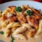 Ein cremiger Nudelteller, der mit zarten Hähnchenstreifen garniert ist, wird Ihnen das Wasser im Mund zusammenlaufen lassen. Stellen Sie sich vor, wie die Nudeln sanft in einer velvety-sahnigen Sauce schimmern und die Hähnchenstreifen perfekt goldbraun gebraten sind – ein wahrer Genuss für die Sinne.